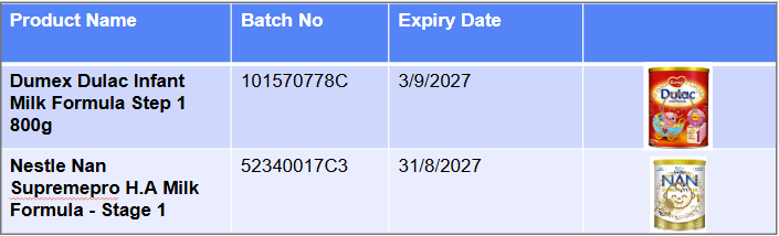 Singapore Food Agency (SFA) has issued a recall for the following products: